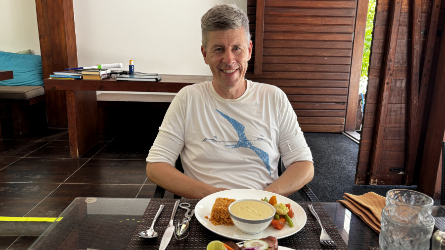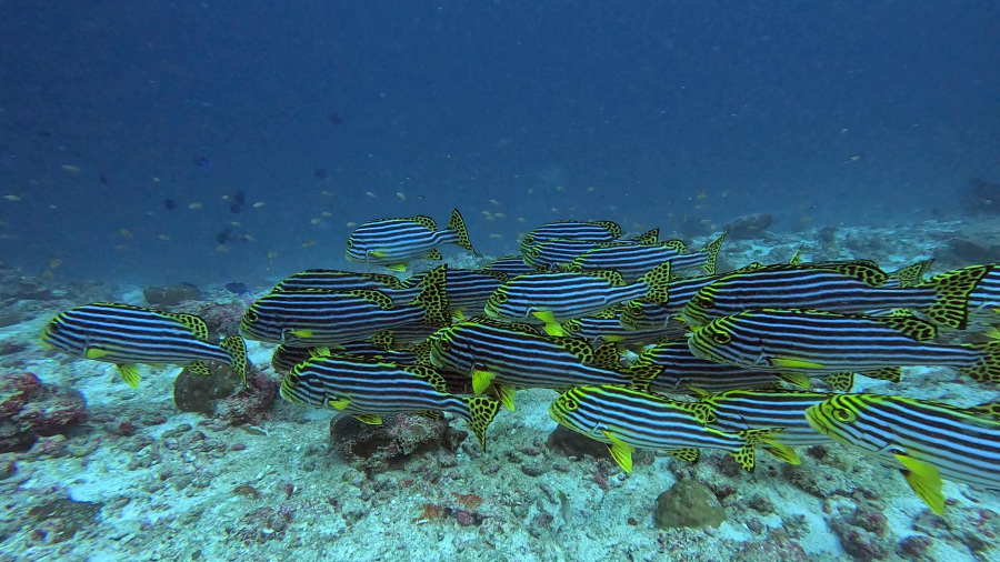 Ker sem že včeraj uresničila svoje sanje, sem se danes lahko res popolnoma sprostila in uživala v dnevu. Ena velika življenjska kljukica z zaliva Hanifaru je pod streho. Klasično dopoldne z dvema krasnima potopoma zame in dobro knjigo v senčki za Matjaža. Potopa sta bila izjemno lepa z veliko krasnimi podvodnimi prizori. Za kosilo sva si že včeraj naročila dve sveži ribi s prilogo in uživala sva v vsakem grižljaju. Po kosilu sva si privoščila krajši počitek na plaži, potem pa okrog treh po cvetočih uličicah na kavico k domačinom in na dober sladoled. Obožujeva lokalne maldivske otoke in domačine, ki še vedno popolnoma pristno živijo na njih brez turističnih dolarjev. To so pravi Maldivi.
