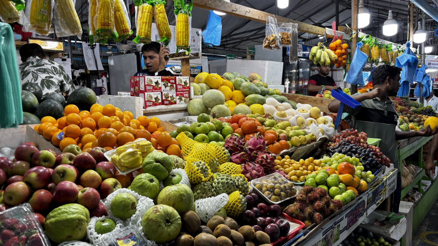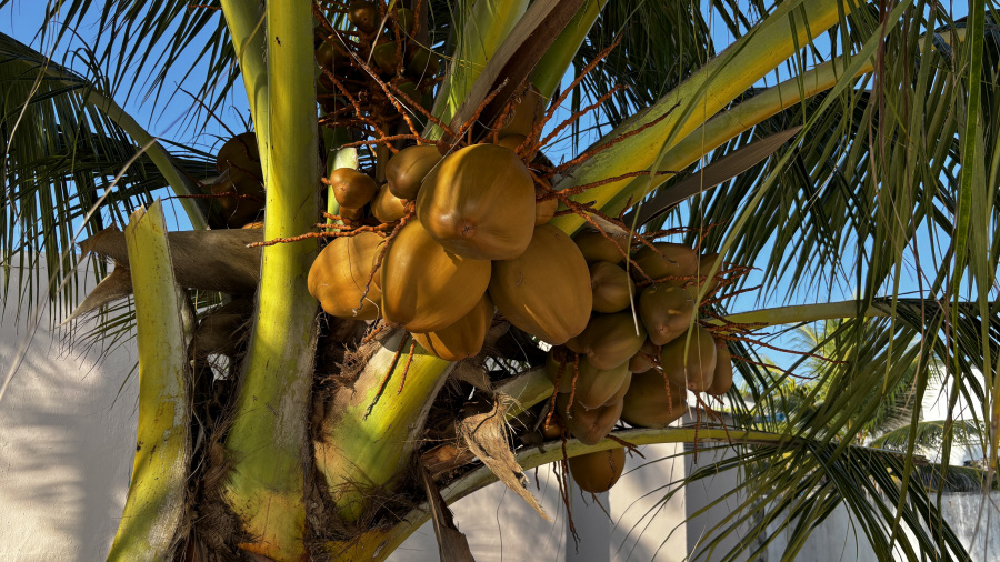- dragon fruit in kokosi na tržnici = 100 MVR (5,7 EUR)