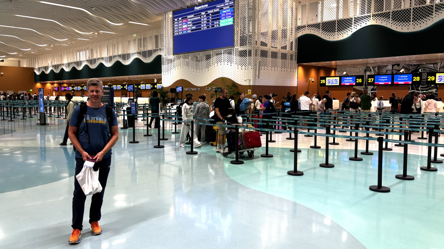 V temi sva se vrnila nazaj na letališče, vzela svojo prtljago in se končno sprehodila po novem letališču. Nimajo še vse letalske družbe odhoda iz novega letališča. Fly Dubai ga je imel in sicer ob polnoči. Novo letališče je res lepo in urejeno, a klima je premočna. Letališče je bilo polno Slovencev in tudi let v Dubaj je bil praktično skoraj poln slovenskih turistov. Kot bi bili na Brniku.