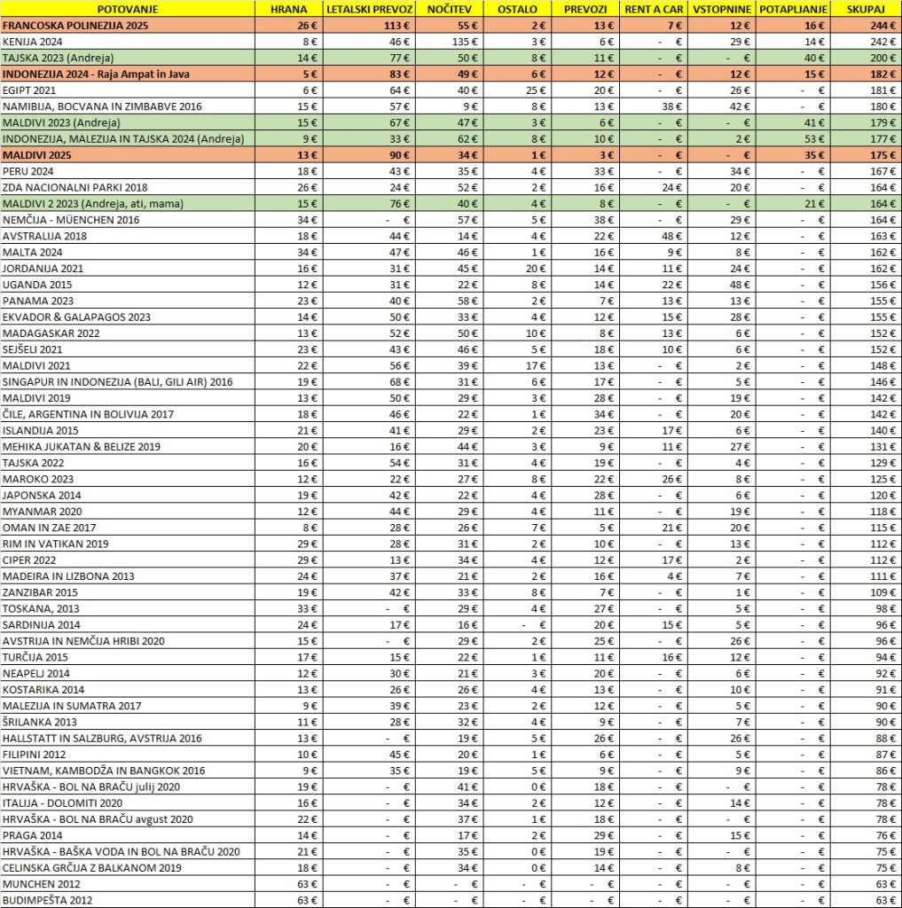 Na celotnih 12-dnevnih počitnicah sva skupaj zapravila 4.205 EUR, od tega za 2 OSEBI: