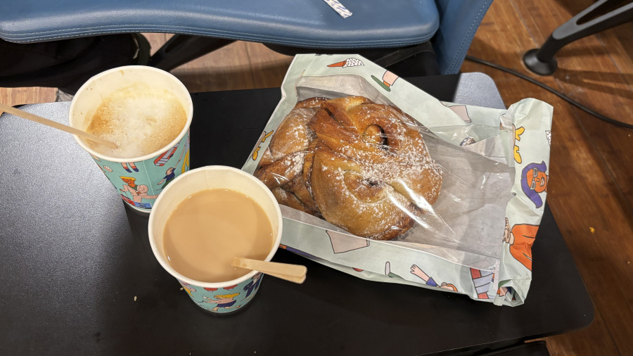 - zajtrk na letališču Tromso (4 cimetove rolice, kava in čaj) = 18,39 EUR