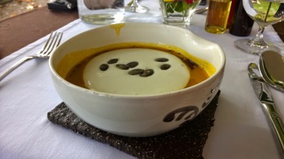 Grrrr, spet se nisva mogla upreti slastnemu kosilu v Vili Podvin. Zdaj sva že kar hišna gosta. 🙂 Bučna juhica s penasto smetano, bučnim oljem in bučnimi semeni.Vila Podvin, Slovenija […]